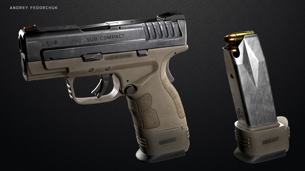 Game ready custom Springfield XD mod. 2 model with attachments intended for first person use. This model was created with real world measurements. You will get: